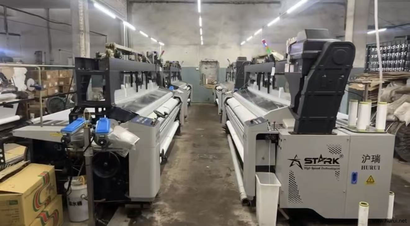 青岛沪瑞纺织机械制造有限公司制造的HR822-340CM喷水织布机在巴基斯坦的织布厂。
